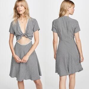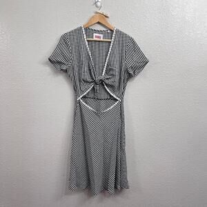 NEW SOLID AND STRIPED BLACK WHITE GINGHAM PRINT CUTOUT KNEE LENGTH DRESS MEDIUM