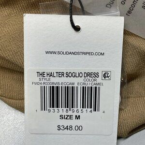 Solid & Striped Women's Halter Dress "The Halter Soglio" Size M – Camel – New With Tags Elevate your warm-weather wardrobe with this stunning Solid & Striped "The Halter Soglio" Dress in a rich camel hue. Designed for effortless style and breezy elegance, this women’s size M halter dress features a timeless silhouette perfect for resort wear, beach outings, or summer evenings. Brand: Solid & Striped Style Name: The Halter Soglio Size: Women's Medium (M) Color: Camel Condition: New with tags Material: Soft, lightweight blend (exact fabric content not specified) Design Details: Classic halter neckline Open back detail Flowing A-line shape Unlined, easy-to-wear pullover style Fit: True to size – ideal for a flattering, feminine shape Occasions: Vacation, beachwear, resort, brunch, or warm-weather casual chic