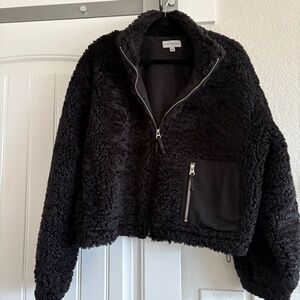 NEW SOMETHING NAVY Black Teddy Patch Pocket Jacket Large L