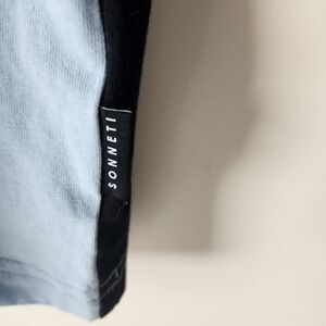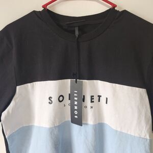 sonneti london shirt tee t-shirt capri mens medium m new with tags nwt color block logo casual streetwear short sleeve black white blue modern graphic top fashion trendy