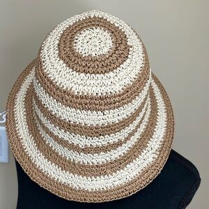 NEW SONOMA Tan with Natural Stripes Adjustable Packable Sun Hat