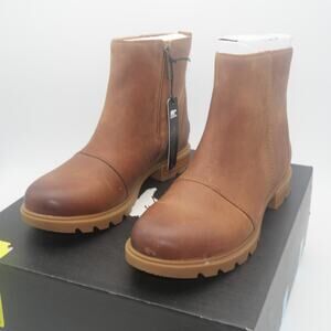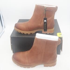 NEW SOREL Women's 7 Emelie III Zip Ankle Boots Leather Brown Velvet Tan