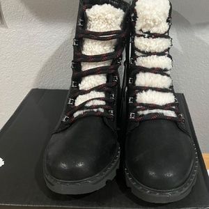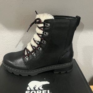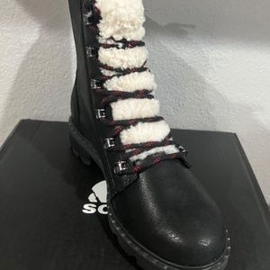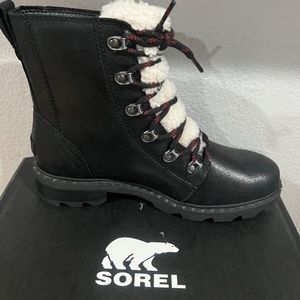 Product Details Department : Womens Manufacturer : Sorel NEW IN SOREL BOX Moto-inspired edge meets a playful pop of pink shearling. Built with waterproof patent leather, a soft microfleece lining, and a comfortable EVA footbed, this rebel boot has a soft side you'll fall for. Walk anywhere and everywhere with steady footing thanks to the rubber sole for grip. Founded in 1962, SOREL combines expert craftsmanship and of-the-moment design to create all-season footwear. What began decades ago with premium boots, crafted with an unparalleled balance of construction and protection, is now a brand dedicated to both functionality and fashion. Here at SOREL, we believe you are your most powerful tool and the determination you find within is an unstoppable force. SOREL challenges the status quo by creating unexpected footwear that pushes the boundaries of function-first fashion. We stay in motion so you can push yourself forward.