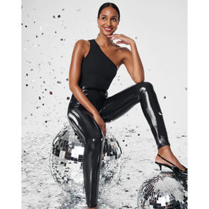 NEW SPANX Faux Patent Leather Leggings High Waisted Classic Black Size Large