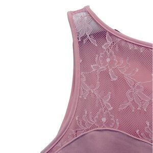 NEW SPANX Floral Lace Bateau Tank Top Illusion Neckline Rosebud Pink Size Small