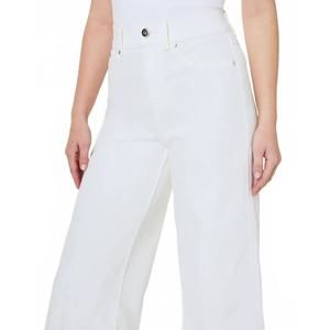 Elevate your style with the Cropped Wide Leg Jeans by Spanx, designed to flatter with a high-rise invisible waistband and relaxed fit. These jeans in Chalk Wash boast a wide leg style with a 12" leg opening and a cropped length with a regular 26.5" inseam, perfect for a minimalist, vacation-ready look. Crafted from a premium cotton blend with 87% Cotton, 9% Polyester, and 4% Elastane, they incorporate the iconic SPANX TummyTamer Tech for shaping and compression, ensuring a comfortable fit without bulk thanks to a pull-on design with faux button front and faux front pockets. Designed for versatile style, these jeans feature functional back pockets and are machine washable, with a care routine of machine wash cold, gentle cycle with like colors, and a tumble dry low finish.