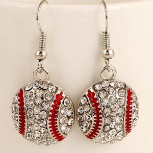 NEW! SPARKLING Rhinestone BASEBALL Dangle Earrings - CHARMING SPORTS TEAM FANS