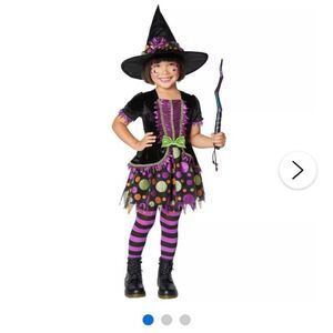 Brand new and in the bag. The wig is not included, Daughter never wore costume, but used the wig. Very cute! Pink and black, neon clown, adorable!