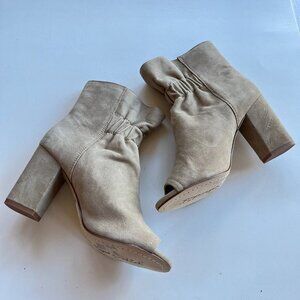 NEW SPLENDID Rayna Suede Peep Toe Camel Bootie Ankle Boots Heeled Womens