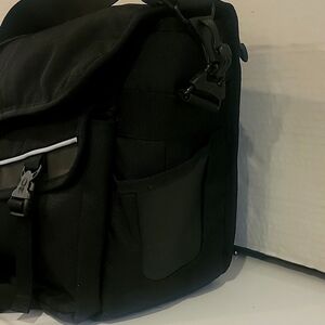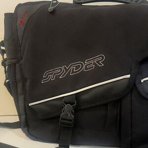 New - Spyder black computer/laptop bag. The bag has 4 compartments. One is padded or your laptop. There are several zippered pockets, a slide pocket and a pocket with a clip closure. The zipper pulls are unique. There is a crossbody strap. The strap has a shoulder pad. Please see all pictures.