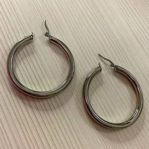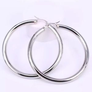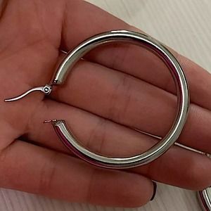 NEW STAINLESS STEEL THICK HOOP EARRINGS 60mm