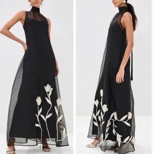 NEW STAUD Albee Maxi Dress Gown XSmall Black White Floral Cocktail *Cover Only*