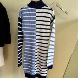 NEW STAUD Mini Hampton Dress - Adriatic Stripe Navy Blue White Knit Causal