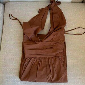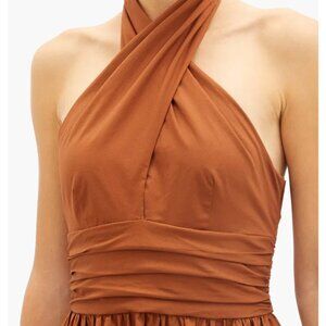 NEW STAUD Moana Midi Dress Sz4 Tan Beige Keyhole Halter-Neck Cotton-Blend