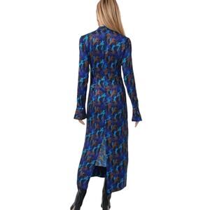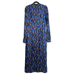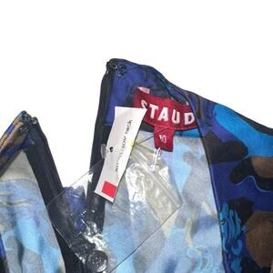 NEW STAUD Thicket Sapphire Sirens Long Sleeve Printed Satin Midi Dress 10