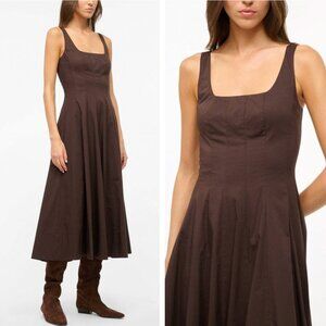 NEW STAUD Wells Midi Dress - Mahogany Cafe Brown Causal French Quiet Lux