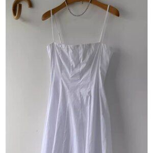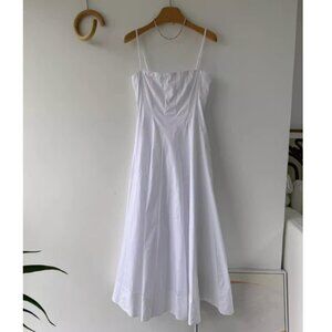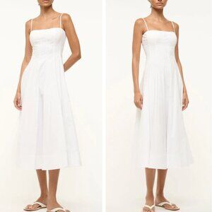 NEW STAUD Wylie Midi Dress Sz4 White Ivory Pleated Causal French Cotton