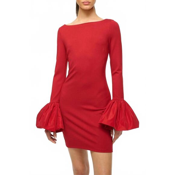 Thanks for checking out our fabulous Posh closet!! All of our items are new with tags! Never worn or used <3 - Composition: 67% Rayon / 29% Nylon / 4% Spandex - Description: The pefect long sleeve dress for those cooler months.Introducing the STAUD Hawthorne Mini Dress in a rich Rouge hue, crafted for a chic holiday party look. This mini dress features long sleeves with elegant flared taffeta cuffs and a sophisticated boat neckline, ensuring a standout silhouette. The heavyweight jersey fabric gives it a luxe feel, with a composition of 67% rayon, 29% polyamide, and 4% elastane, enhanced by a 100% polyester trim. A concealed hook-and-eye and hidden zip closure at the back, complemented by a back vent, provide a sleek finish. - Because all of our merchandise is brand new and often times in original packaging, extra photos or measurements cannot be provided - Heads-up that color shades may vary due to the photo lighting - We always put the color name in the title - All items are final sale - Thank you so much for shopping! We appreciate you :)