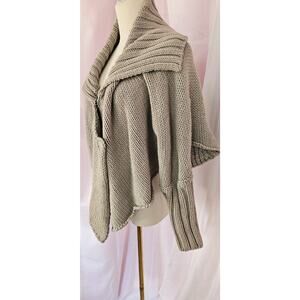 NEW STEFANEL Grey Knit Asymmetric Wrap Jumper Shawl Unusual Oversized WOOL Bl XS