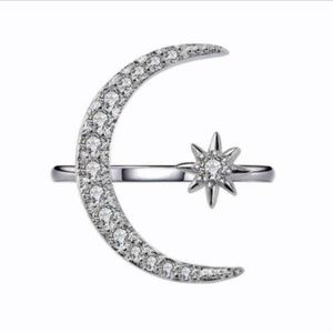 NEW STERLING SILVER MOON STAR ADJUSTABLE RING, CUTE RING, SHINY RING.