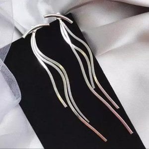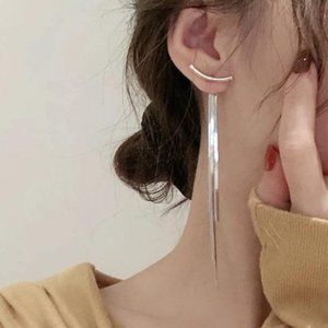 NEW STERLING SILVER TASSEL BAR LONG ARC EARRINGS, NICE EARRINGS, CUTE EARRINGS