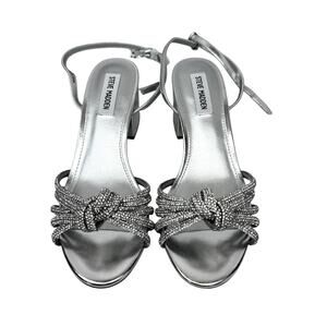 NEW STEVE MADDEN ILYSE-R Silver Rhinestone Block Sandals Size 7.5