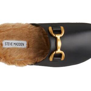 NEW STEVE MADDEN Leather Masin Faux Fur Bit Buckle Mules black for women 462tn