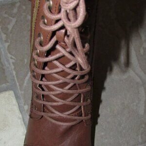 Side-zip closure with a lace-up front (one functional, one zipper just for show and does not zip).