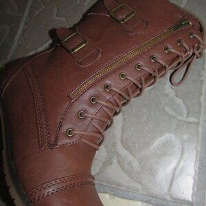 NEW STEVE MADDEN MADDEN GIRL E COGNAC BOOTS WOMENS LACE UP BOOTS MID