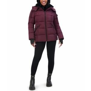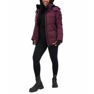 NEW STEVE MADDEN juniors faux-fur-lined hooded puffer coat in merlot