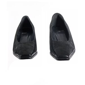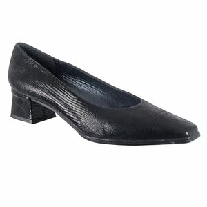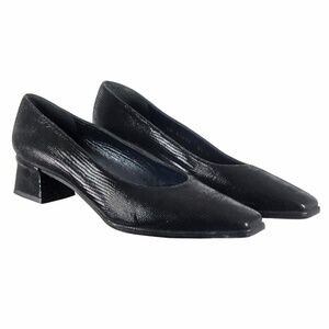 NEW STUART WEITZMAN Pumps Low Heels Sz. 8.5 C Black Shimmery Lizard Effect SPAIN