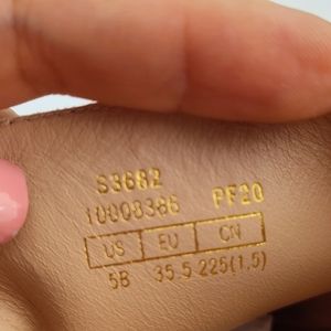 - Faux pearl outline at insole