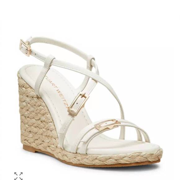 NEW STUART WEITZMAN women's georgie espadrille wedge sandals in white