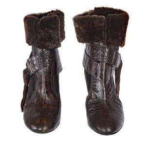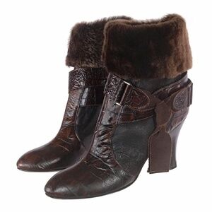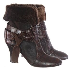 Women's STUDIO POLLINI mid-calf booties. Marked size 36 (EU sizing), equivalent to size 6 (US sizing). Size conversion has been taken directly from the 'POLLINI' website. Uppers are a mix of crocodile-embossed leather and high-end shearling. Decorative wrap-around strap. Made in ITALY. New, may have been tried on. See photos for details. *Photos are of the actual item*