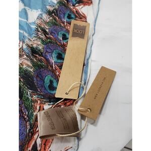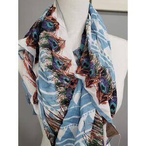 NEW STUNNING Look By M peacock lightweaight scarf head wrap neck cotton blue