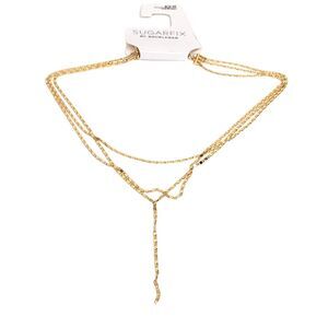 NEW SUGARFIX by BaubleBar Layered Y Chain Necklace Y Drop Gold Color
