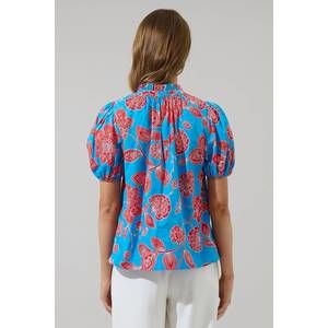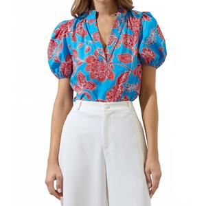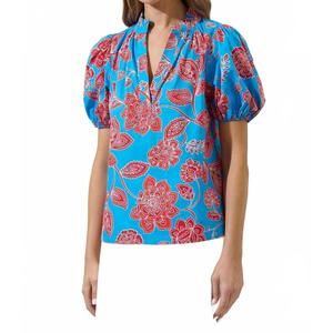 NEW SUGARLIPS ripon floral close to you split neck top in blue/red