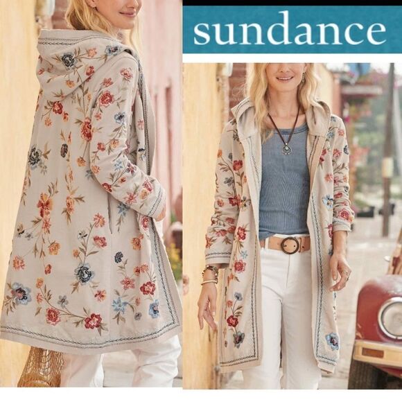 NEW SUNDANCE Driftwood embroidered Blooming Garden tan red Jacket S SMALL NWT