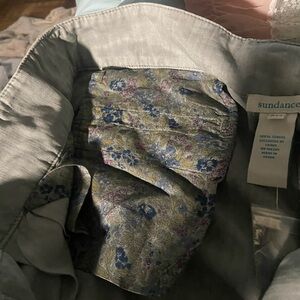 New never worn pleated pants. Has zipper, button hook and belt closure. They have back pockets with matching lining as the front but are stitched close. They are extremely nice pants from Sundance.