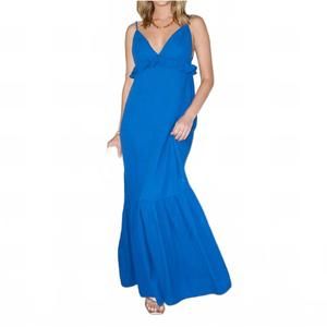 Experience the allure of the Garnet Maxi Dress by Sundays, an Olympian Blue masterpiece in the trend of Quiet Luxury. Crafted from cotton, this dress features elegant spaghetti straps and a graceful slip silhouette, perfect for a spring beach day or Valentine’s affair. With a solid pattern and V-neckline, it wears a sophisticated button closure and provides ruffled elegance sans pockets. For care, simply machine wash and tumble dry.