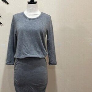 NEW SUNDRY Heather Grey Long Sleeve Knit Blouson Ruched Elastic Waist Dress 0 XS