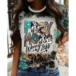 NEW SZ L “Pray More Worry Less” Western Leopard Print T-Shirt