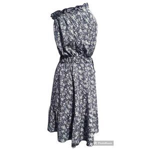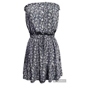 NEW SZ S Woman’s Navy Blue Sleeveless Floral Drawstring Ruffled Dress