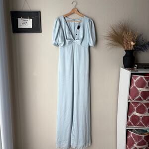 NEW Sachin & Babi Gown Alli Ice Blue Puff Sleeve V-neck Maxi Dress Size 2