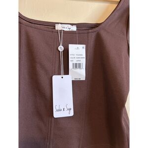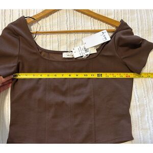 NEW! Sadie & Sage Square Neck Cropped Seamed Corset Knit Top Choc Brown L NWT