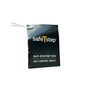 Women's pair of SafeTStep black leather clogs, size 12W. This is a new pair, with a couple of imperfections as show in pics. There is a small indent on the front side of one shoe, its intact but it indents in a little bit. There are also a couple of minor scuffs that aren't very noticeable unless you're looking up close. Very comfortable and supportive shoes, great for work such as nursing or food service where you're on your feel all day.