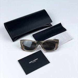NEW Saint Laurent SL593 003 Beige Grey Silver Square Unisex Sunglasses