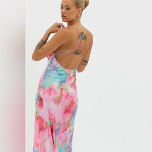 Saints & Secrets dress abstract print maxi dress pink summer wedding guest dress date night outfit vacation dress y2k vibes feminine chic hot girl summer dress backless dress aesthetic strappy dress lightweight polyester TikTok dress going out dress trendy maxi 2020s fashion festival outfit inspo boho luxe party dress brunch outfit scoop back resort wear