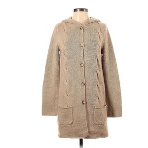 Excellent Pre-loved Condtion, super soft and thick knit 100% Cashmere Hooded Cardigan, Knee length, button closure, two front pockets.