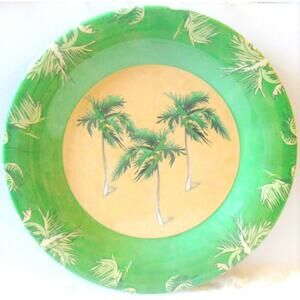 • The Center Of This Plate Features Three Coconut Palm Trees Of Sway In The Tropical Breeze, A Golden Cream Background, And Border Of Green & White Palm Fronds!